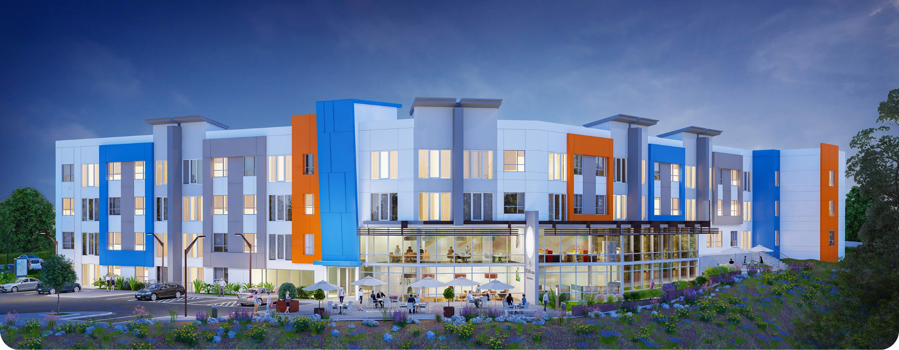 Early elevations and design visuals for a modern, calm environment intended to support privacy, comfort, and engagement.